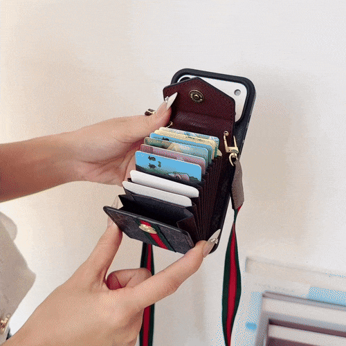 The Classic Leather GG iPhone Case with Card Holder and Strap in Brown offers a perfect blend of luxury and function. Crafted from premium leather, it provides elegant protection, built-in card storage, and a stylish strap for convenient daily use.