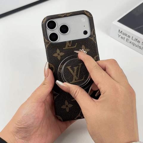 This classic leather monogram iPhone case features a magnetic stand with bold big-print detailing. Designed for the iPhone 17 Series, it offers reliable protection, hands-free viewing convenience, and a timeless luxury style for everyday use.