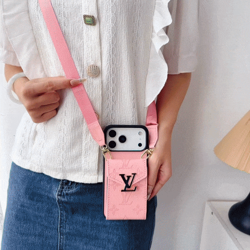The Leather Monogram iPhone Case with Card Holder and Strap combines luxury design with practical functionality. Crafted from premium leather, it features a classic monogram pattern, secure card storage, and a detachable strap for elegant everyday use.