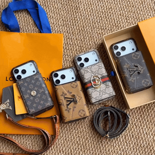 This Leather Monogram iPhone case with card holder and strap offers premium protection and practical functionality for the iPhone 17 Series. Crafted from high-quality leather, it combines style, versatility, and a luxurious LV-inspired design.
